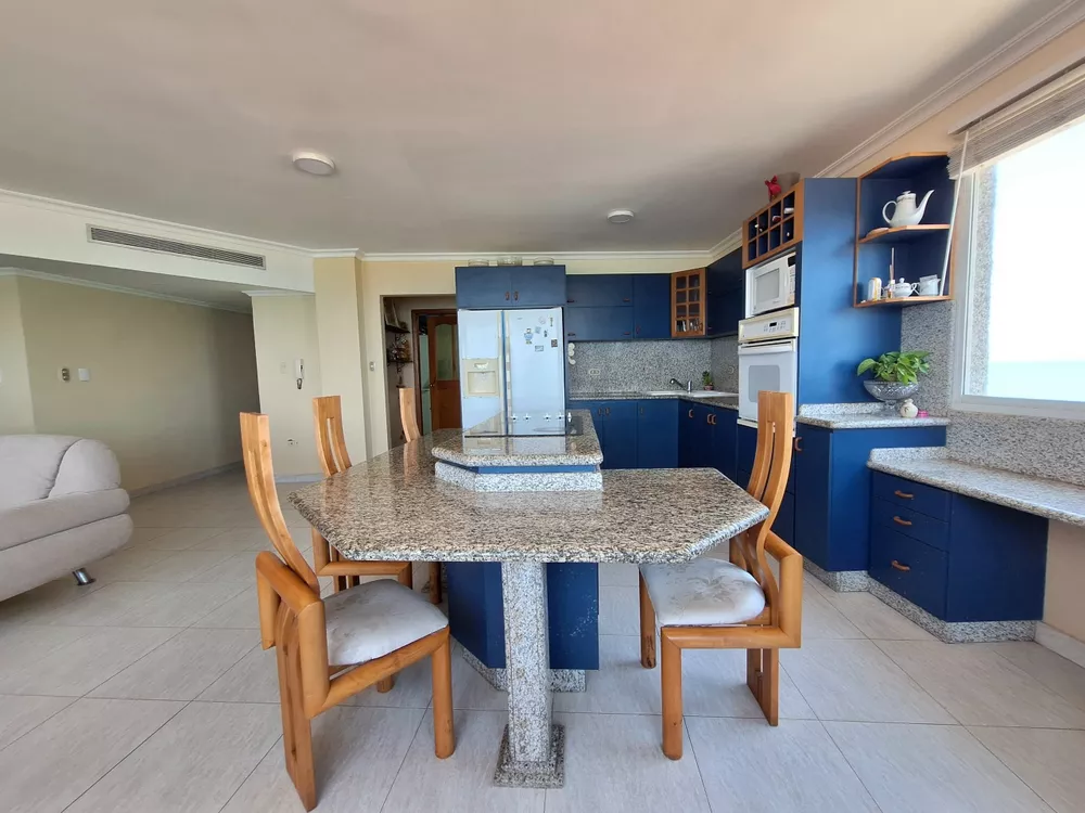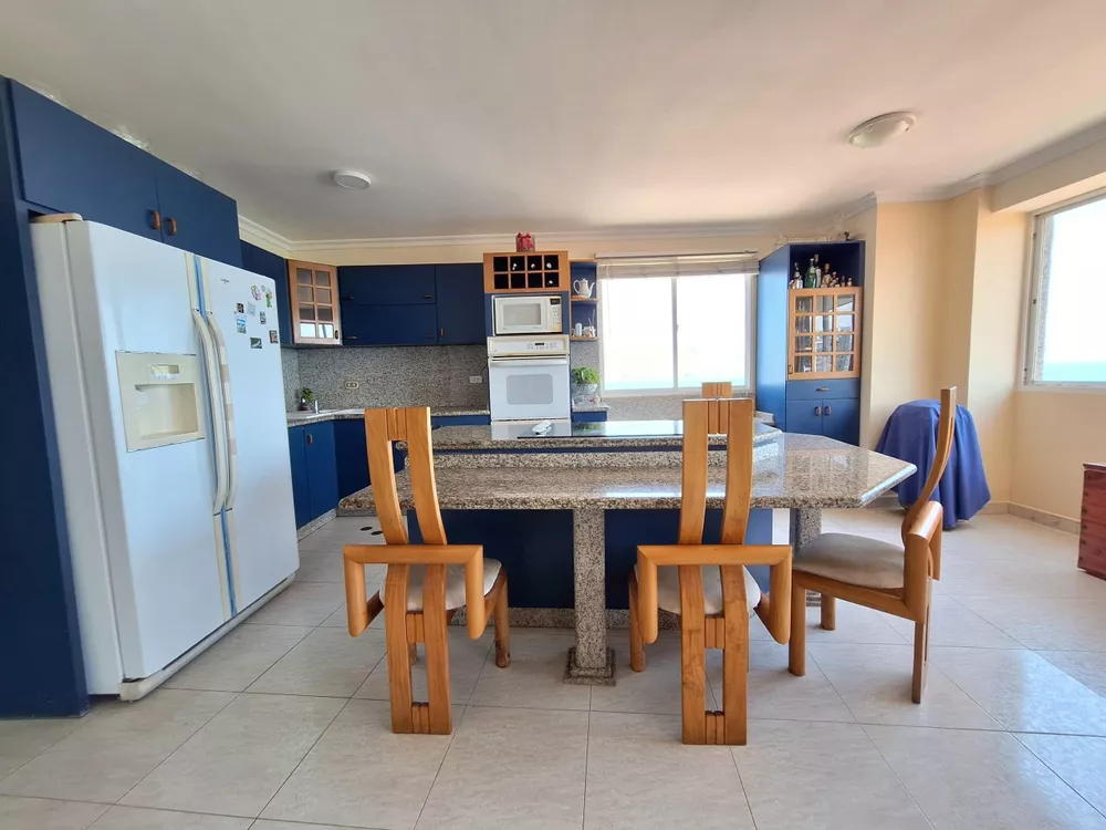En Venta amplio y hermoso apartamento con vista al mar.Ubicado en Res. Bahía Coral Apartamento de 170mts2, Hall de entrada privado al apto, Piso 6, 1 apto por piso, Sala, Cocina Tipo Isla, con nevera, horno, microondas, fregadero doble ponchera, tope y pantalla de granito, lavadora y secadora, totalmente amoblado, Iluminación Led, Cómoda Área de Servicio, 4 habitaciones, 4 baños, Fibra Óptica, tv cable, A/A 5 ton, 1 aire tipo split de 12 mil btu, 3 puestos de estacionamiento (2 techados y 1 al sol), 2 maleteros, puertas y closets de madera macisa en romanilla en habitaciones y baños, molduras en sala y cocina, doble balcón, cerámica española, único dueño, Vista Insuperable al mar (vista a playa lido, cerro el morro, parte de plc y playa muerta) el edificio cuenta con amplio tanque subterráneo de agua, cerco eléctrico, salón de fiesta y piscina.