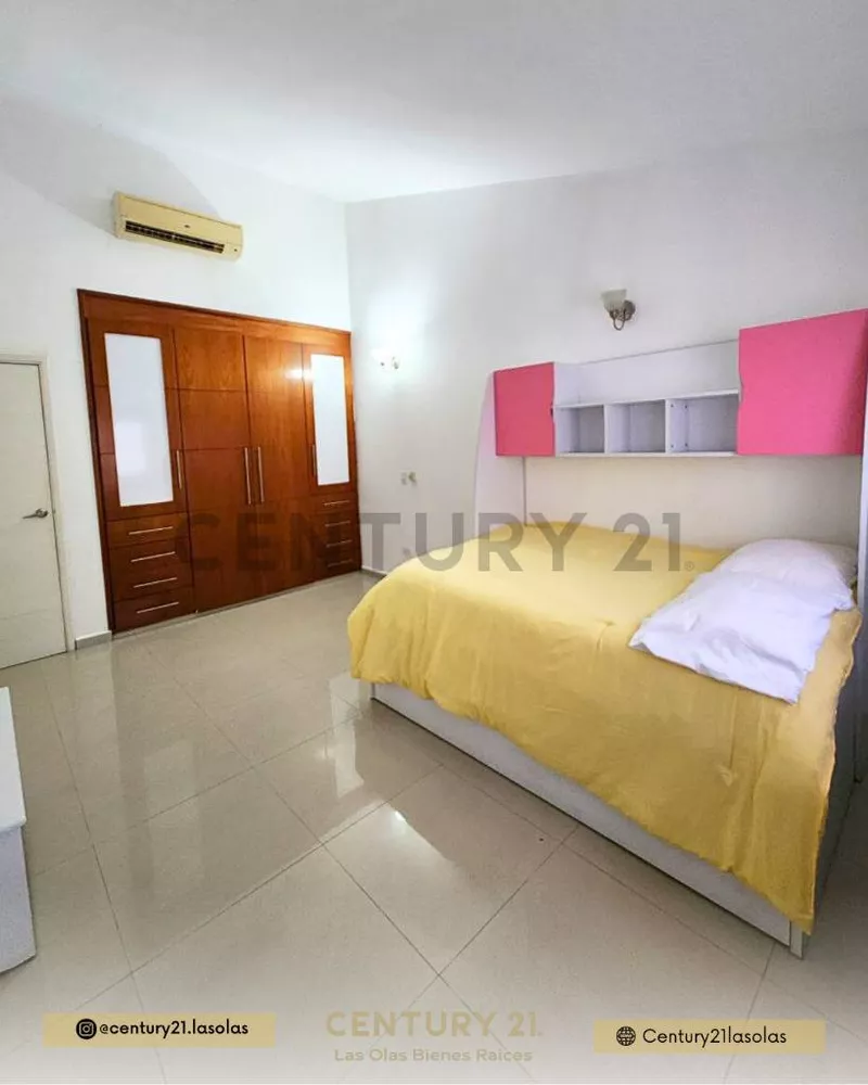 Moderna Casa de dos niveles en "Casa Bote A" el cuál posee las siguientes propiedades: 2 niveles Metraje: 220m² Totalmente amoblada y equipadaCocina con acabados de primera y electrodomésticos de alta gama. 4 habitaciones + servicio(1 hab en planta baja + la de servicio)EstudioÁrea de lavandero5 bañosPlanta eléctricaInternet y directvSistema de cámaras de seguridadPiscinaEstacionamiento: 2Puesto de muelle El conjunto ofrece: Vigilancia las 24 horas.Alquiler: 1.500$ con servicios y condominio incluidos- 1.350$ sin servicios