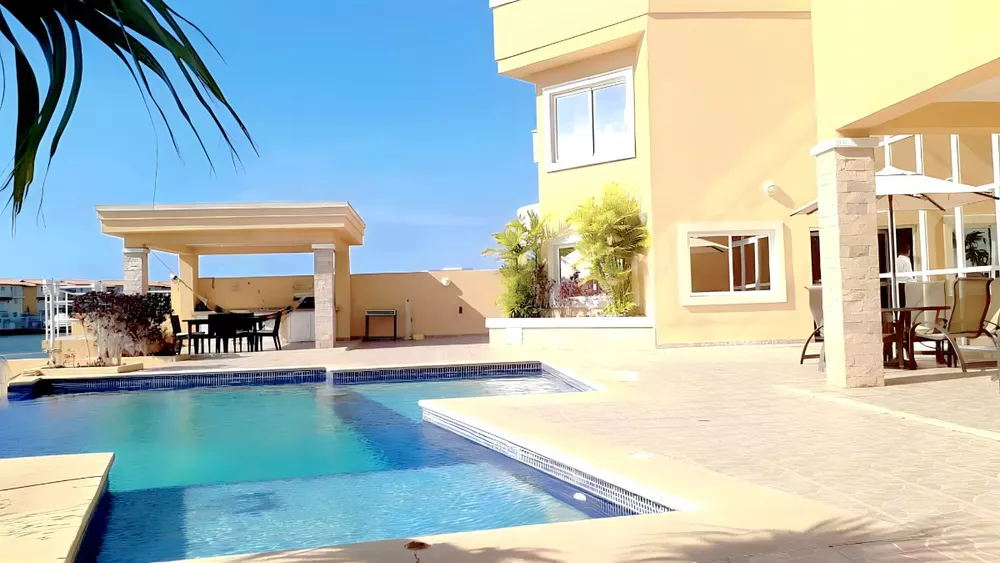 Evergreen Inmobiliaria, ofrece en Venta, espectacular villa, en la exclusiva Urbanización Las Villas de la ciudad de Lechería complejo turístico el morro.Consta de 1460 mt2 de terreno y una construcción de 440 mt2 distribuidos en:- Nivel Planta Baja: Sala Principal, Comedor, estar, amplia y moderna cocina con todo sus electrodomésticos, cuarto - lavandero- 3 habitaciones (huésped con baño, habitación auxiliar, hab. de servicio con baño)- área de piscina, caney con parrillera.- Muelle en canal principal de 30mts para yates con fácil acceso a los principales canales navegables.- Tanque de agua de 2.000lts e hidroneumático.- jardines, estacionamiento para 6 vehículos.- Nivel Planta Alta:- 4 habitaciones c/u con sala de baño y closet -Vestier.- 1 family room, más área de terraza.- El inmueble tiene cinco (5) unidades de A/A central, Alarma con sensores,Acabados de lujo, servicio de internet, cable tv y teléfono.- El Condominio tiene vigilancia privada las 24 horas, cancha de golf.Precio: $ 890.000Asesores:Rosa Maria Mata+58 04248116548Alexander Mata +58 0424107845