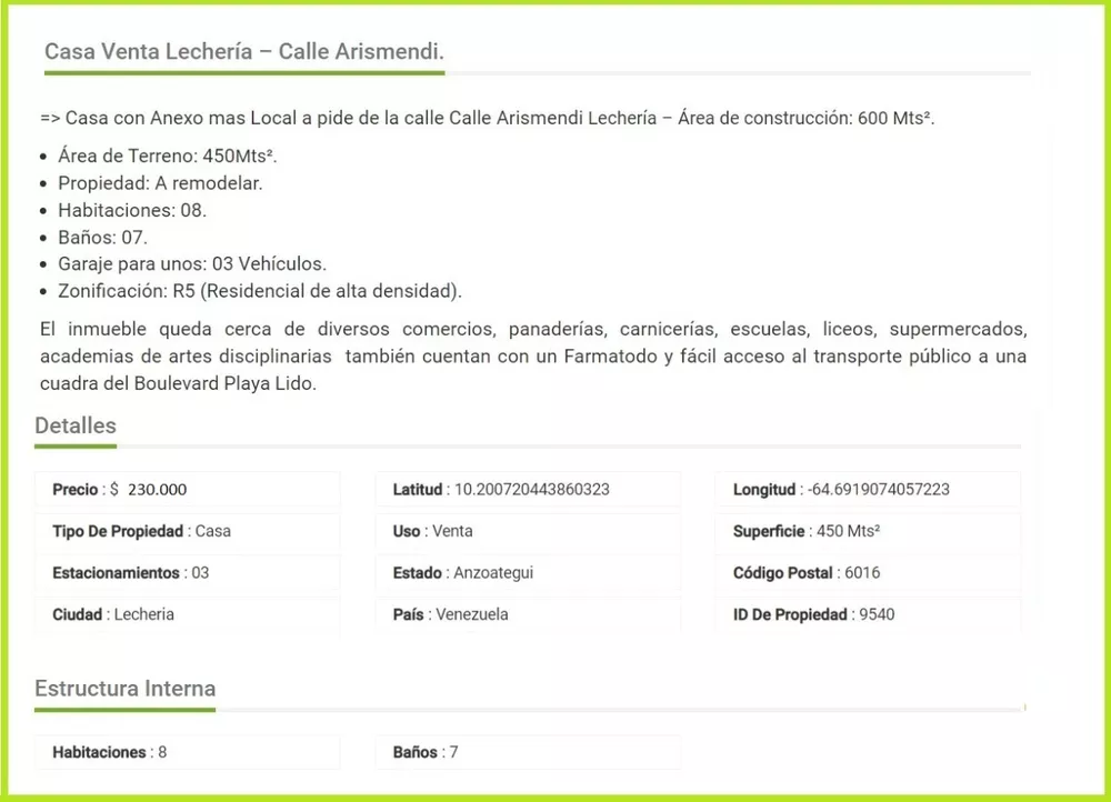 Casa Venta Lecheria Calle Arismendi - Sujeys Ortiz Evergreen.Mtrs2: 450.Propiedad: A remodelar.Habitaciones: 08.Baños: 07.Garaje para unos: 03 Vehículos.Zonificación: R5 (Residencial de alta densidad).Para más información puede contactar:Sujeys Ortiz - Asesor inmobiliario:+58 4121921043 +58 4147810639Evergreen Inmobiliaria C.A"Obtén lo que soñaste"