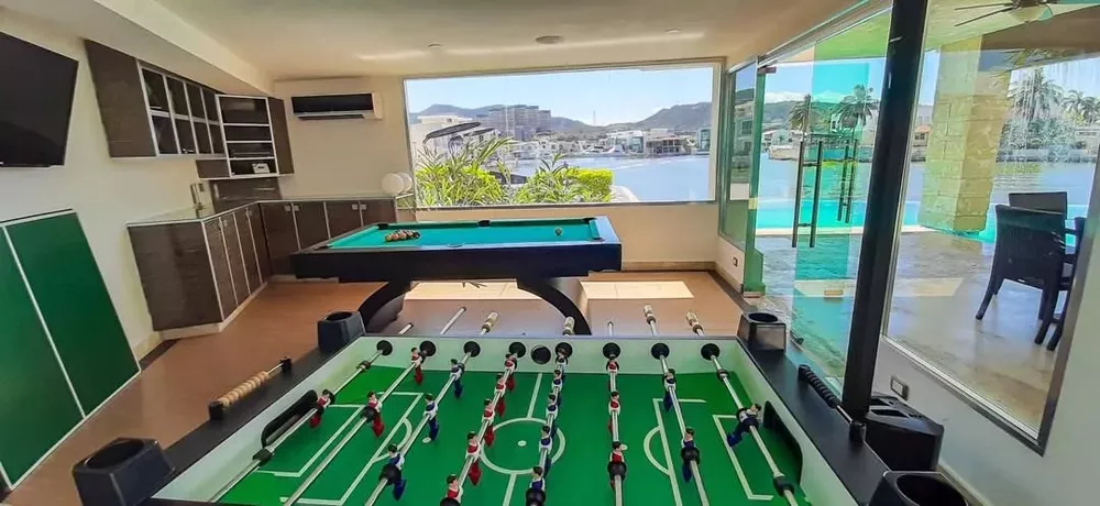 CGI + LECHERÍA OFRECE LUJOSA VILLA EN URBANIZACION LAS VILLAS662,51 mts2 de construcción1445 mts2 de terreno6 habitaciones8 salas de baño6 puestos de estacionamientoDiseñada arquitectónicamente con un concepto abierto el cual nos permite tener una conexión visual directa al área de comedor y sala de estar, acabados con pisos de Mármol Travertinos, pared revestida con Espacato. Jardín Interno, cuatro reflectores RGB los cuales se activan con las fotocélulas ubicadas en el exterior, a fin de brindarle entrada a la naturaleza del entorno e iluminar el área durante la noche, se encuentra en esta área las escaleras principales que dan acceso al segundo nivel de la propiedad; escalones con huellas de vidrio (cuenta con tres capas de vidrio de seguridad) y pasamanos de acero inoxidable, sistema de seguridad integrada por una Alarma con pantalla táctil marca Paradox, sensores de movimiento y cámaras de seguridad. La cocina presenta excelentes acabados. El mobiliario con los topes han sido importados desde Alemania Los mismos tienen un sistema de apertura eléctrica asistida y tiradores de la reconocida marca Blum, alacena revestida con chapilla de madera a juego con la máquina de hacer café de la reconocida marca Miele. Los equipos de cocina refeAlquileres a Horno, Horno Microondas, Refrigerador y Congelador son de la marca Gaggenuay tiene terminaciones en Acero Inoxidable. En el medio de esta área se sitúa una isla en forma circular, las cuales están provista por una hornilla a Gas marca Foster y un tope de cocina eléctrica marca Foster, importadas. También cuenta con una maquina lavaplatos, fregadero doble de forma circular y con terminaciones en acero inoxidable empotrado al tope de la isla, los cuales al abrir se activan las luces LED de color blanco en el interior de las mismas. El comedor, presenta acabados con pisos de Mármol Travertinos y una doble altura que se encuentra decorada por un Candelabro en cascada de luces amarillas que sin duda es una de los atractivos de este espacio. Con vista a las áreas exteriores y al canal, este espacio cuenta con amplios Ventanales. Baño Auxiliar, muy vanguardista, el medio baño de invitados cuenta con piezas sanitarias de la marca NEO METRO, las cuales son de acero inoxidable (tanto el lavamanos como el WC), un espejo el cual tiene iluminación propia y accesorios de acero inoxidable de la marca DornBracht. En esta área también se cuenta con un controlador de sonido y aire acondicionado central. Estudio para ser utilizado como una oficina privada, presenta acabados con pisos de Mármol Travertinos. Sistema de seguridad integrado de la casa, aunado al sistema de internet satelital, adicional cabe destacar que el espacio cuenta con servicio de cable proporcionado por DIRECTV y con vista directa a las áreas externas y muelle de la propiedad. Planta Alta: Escalera principal que dan acceso al segundo nivel de la propiedad; pasillo que conecta a las habitaciones. La Habitación Principal. Tiene un concepto vanguardista y minimalista el cual se encuentra iluminado por luces LED, y un sistema de sonido envolvente reproducido a través de cornetas Bose pisos de madera flotante, también cuenta con persianas Hunter Douglas tipo Black Out con apertura eléctrica (cuenta con control remoto). En esta área también se localiza el router que proporciona el servicio de sistema de internet satelital, Cabe mencionar que tiene su propio Balcón con vista al mar. El baño principal, cuenta con un WC Inteligente de la marca Kohler (cuenta con su control remoto), tiene dos lavamanos de cerámica blanca con grifería de acero inoxidable, adicional un espejo el cual tiene iluminación LED luz blanca propia y televisión incluida. También cuenta con una bañera marca Kohlery una ducha de techo tipo marca Hansgrohe.