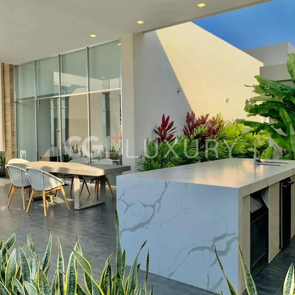CGI + LECHERÍA OFRECE EN Venta ESPECTACULAR CASA EN LAS VILLASCon un diseño único arquitectónico esta casa cuenta con 670m2 de construcción distribuida en una sola planta con amplios Ventanales que facilitan el disfrute la iluminación natural.Posee 1308m2 de parcela.Estacionamiento para + de 5 vehículosCocina principal marca italianaCocina auxiliar4 habitaciones con baño y 3 de ellas con vestier.1 habitación de servicio1 estudioMuelle de 29.7 MLPlanta eléctrica de 100 KVAÁrea de Piscina en continuidad con las habitacionesÁrea de lavanderíaDepósitoGarita de vigilanciaCuarto de máquinasAlmacénTotalmente Amoblada con mobiliario de lujoEl proyecto arquitectónico contempla el desarrollo constructivo de una vivienda unifamiliar aislada de una planta, la cual responde a las variables ambientales y urbanas de la parcelaPRECIO 1.790.000 USD