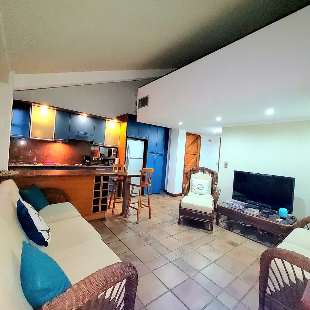 - 1 Habitacion, con balcon.- 2 baños.- Cocina empotrada, comoda y moderna (equipada).- Area de lavanderia.- Sala con vista hacia el canal principal.- Balcon / terraza exclusiva con vista el canal principal.- Atico convertido en habitacion.- Internet wifi.- Semi-amoblado.- 1 Puesto de estacionamiento. - Puestos para visitantes.El condominio además cuenta con hermosas areas verdes, varias piscinas, caminerias, cancha de usos multiples, salida al mar abierto, vigilancia estricta 24 horas del dia, salon de fiesta, parque infantil, bodegón, salón cultural de usos múltiples.Precio: 450$ mensual