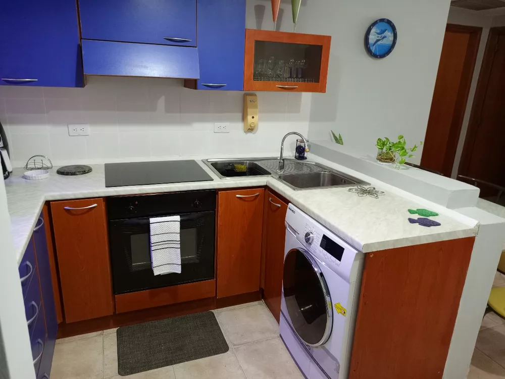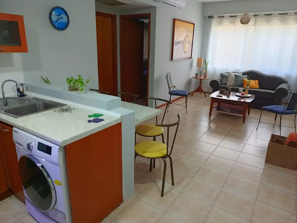 LAS SALINAS, EDIFICIO CÉNTRICO DE LECHERIA CON UN FARMATODO A 5 PASOS DE DISTANCIA El inmueble internamente se distribuye en:68m² de construcción, ubicado en Piso 3 (posee ascensor).1 Habitación con cama matrimonial1 Habitación con cama individual 2 Baños (uno en la hab ppal)Área de lavado (lavadora-secadora incluida)1 Puesto de estacionamientoCocina equipadaAire Acondicionado central y tipo Split El edificio cuenta con piscina y vigilancia privada.Incluye: Wifi Fibra Óptica de Tecnonet