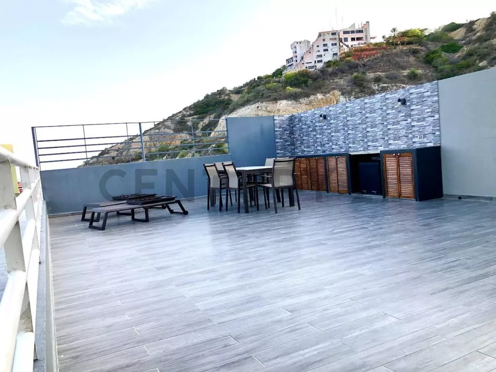 Descubre este lujoso inmueble tipo duplex de 172 mts2. En la planta inferior, disfruta de una elegante cocina comedor en concepto abierto, con elementos de alta gama, y exquisitos detalles de decoración que incluyen una chimenea eléctrica, creando un ambiente sofisticado y muy acogedor, pero lo que te dejará sin aliento será su increíble terraza de dos ambientes (área para descanso y área social con parrillera), con vista al mar y a las bellas áreas del Conjunto, perfecta para momentos inolvidables y en la privacidad de tu hogar. Cuenta con una habitación principal con vestier, baño y acceso directo a la terraza, y dos habitaciones mas con sus baños incluídos, ademas de un baño para visitantes.En el nivel superior, encontrarás una amplia sala y espacio de family room, ademas de una habitación para huespedes, baño y habitación de servicio, con baño y área de lavado.No dejarás de impresionarte con las áreas comunes que incluyen una bella piscina con vista al mar, área de muelles, caminerías y hermosas áreas verdes.Esta propiedad cuenta con puesto de estacionamiento techado, muelle privado, maletero, planta eléctrica, tanque de agua de mas de 2000 litros